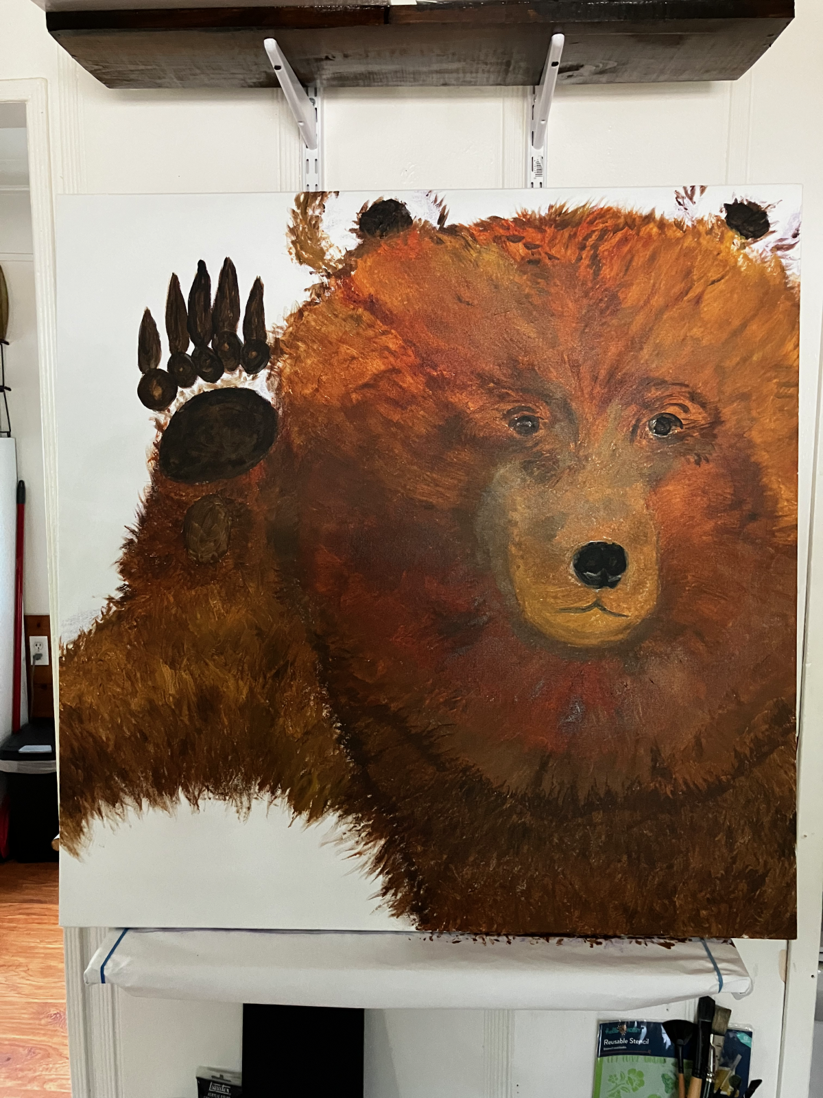 I have started a new series, "Bless The Wild", in which 10% of each sale is donated, for the conservation of State and National Parks. I love the wild! And pray all creatures great and small thrive, in what little land we still allow them. I have two paintings offered at the Siskiyou Art Museum, where 40% of each sale supports this venue. The first painting offered is "Cycles". 24x36 Acrylic on canvas. This painting demonstrates life and death, inner and outer. And how we are subject, to divine movements within and without, conscious or not. We all play our part, in the amazing symphony we call life. The other painting is "Hello Bear". In which I celebrate the grizzly bear. We hunted them into extinction, in my home state, of California. There is a rumor they may be reintroduced here, but I'm not holding my breath. I don't think there is enough wild space, or food available, for these magnificent creatures. "Hello Bear" 36x36 Acrylic on canvas. These two paintings are on offer, at The Siskiyou Arts Museum, through April 4th. Your generous purchase supports Siskiyou Arts Museum and conservation efforts, for the "Wild". And of coarse me! Thank you, from the very depths of my heart!